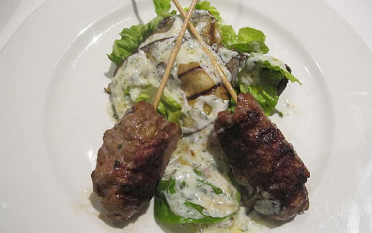 Lamb Kabobs with Grilled Eggplant & Mint-Yogurt Sauce