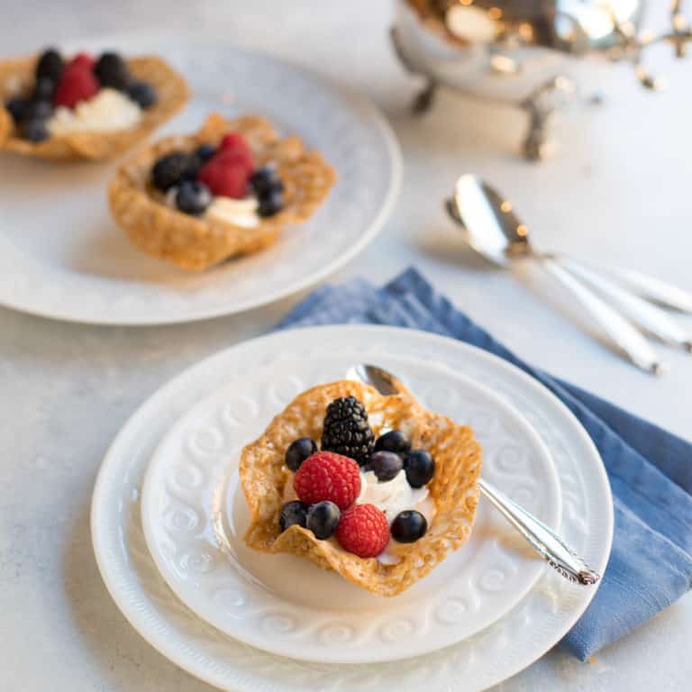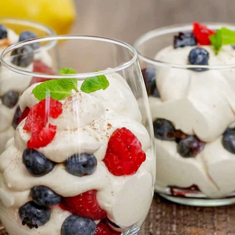 Berry Cream Parfaits are quick and easy to prepare with only 6 ingredients, with flavors reminiscent of a creamy cheesecake. A blend of cream cheese, crème fraiche (or sour cream), lemon juice, sugar and cinnamon is layered with fresh berries in a fun glass and, presto! you have a scrumptious and beautiful dessert.