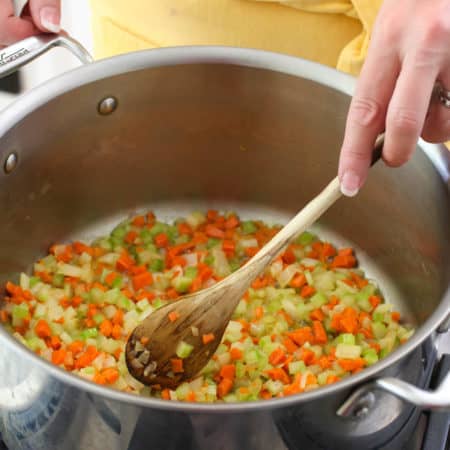 Our recipe calls for carrots, onion and celery. You could also add cubed butternut squash, shallots, green onion, or bell peppers.