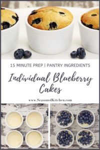 Individual Blueberry Cakes are a scrumptious and easy to prepare dessert you can pull together in less than 15 minutes (prep time) with only 7 ingredients that you are likely to have in your pantry.