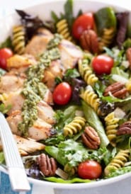 Grilled Tarragon Chicken with Pasta, Pecans and Spring Greens