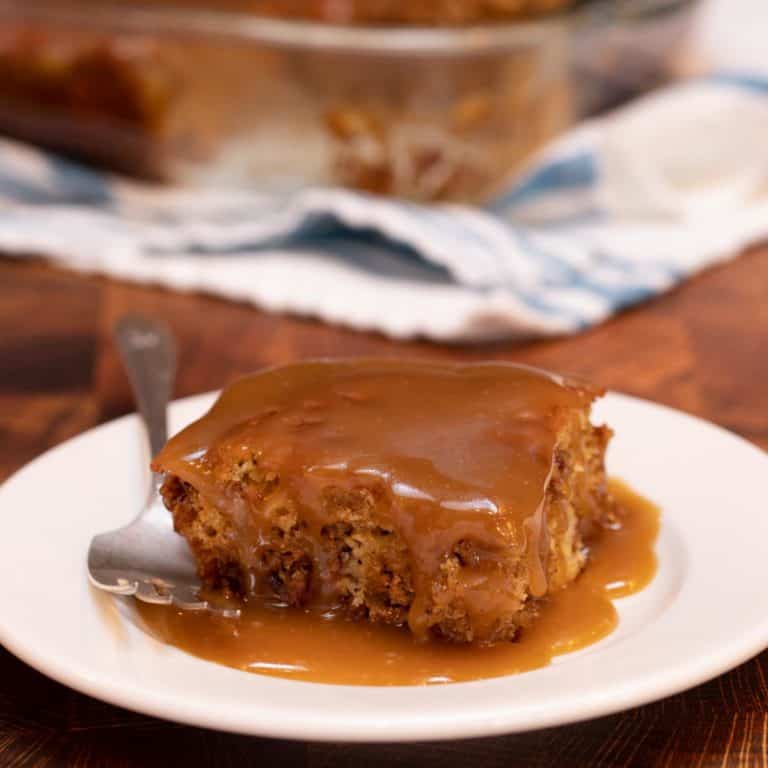 Sticky Toffee Pudding is a scrumptious cake spiked with dates and served with an amazing toffee-flavored sauce. Easy to prepare, the cake can be prepared up to one month ahead, the sauce earlier the day of serving. Super delicious!!