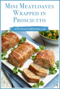 What says “cozy family dinner” better than meatloaf and mashed potatoes? It warms us up from the inside out. I have several favorite meatloaf recipes – like my Cajun Meatloaf – but I’d never created mini meatloaves. I’ve had them at restaurants and thought they were a fun way to make a basic home dish a bit more elegant, especially when wrapped with prosciutto.