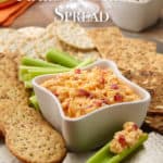 My mom’s mouth-watering Pimento Cheese Spread recipe is the ultimate in Southern comfort food. A zesty blend of two sharp cheddar cheeses, tangy pimentos, mayo and just the right amount of spice, this dip will elevate your taste buds to the next level. Whether you’re enjoying it with crackers or spreading it on a sandwich, this recipe is sure to impress your guests at your next party or gathering.
