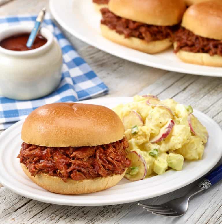 This make-ahead menu is a guaranteed crowd-pleaser! Dig into tender, moist BBQ Beef Sandwiches alongside a delicious recipe for creamy Potato Salad and a medley of mixed greens tossed with a sharp vinaigrette. Dark chocolate brownies and tangy lemon bars round out this casual BBQ feast.