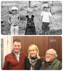 Our two families have been great friends since the 1950s. So, I thought I would also include two non-sourdough related photos – the first one is of me, Mark and Jim when we were young (circa 1963), and then the second shot is of the three of us on the evening of the Passing of the Sourdough Starter ceremony: