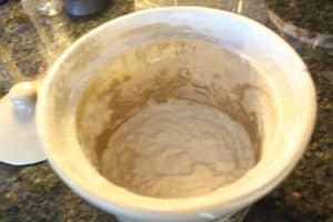 So, fast forward to around 2014. My cousin Beth, Sarah’s mom, has kept her starter alive all these years, which is a good thing since her husband Jim, yet another gourmet cook in the family, loves to bake sourdough bread. One day, Sarah was being helpful and decided to clean out the refrigerator. Not knowing what the starter was – it can look kind of ugly when it’s ripe –