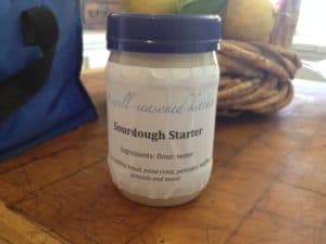 When I arrived at the Kidwell’s home, we had a little ceremony at which Sarah and I gave Jim his starter – the “Sourdough Starter Family Reunion”.