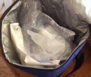 . . . .and put the jar inside 2 large zip top baggies. Then all of that was put inside a small insulated carry case with a freezer block. All of that went in the middle of my checked suitcase.