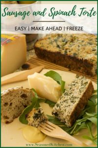 Sausage and Spinach Torte is a basically a super flavorful meatloaf that’s served at room temperature. It was a favorite recipe of my mom. She loved serving it at picnics, Botanic Gardens concerts, tailgates – even lunch when cross country skiing!