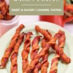 These addictively delicious Spiced Bacon Twists are chewy, crunchy and both sweet and savory. Salty, smoky bacon is dredged in a sweet and spicy brown sugar mixture and then baked until crispy. The resulting bacon has the most wonderful caramel taste, with a bit of zing.