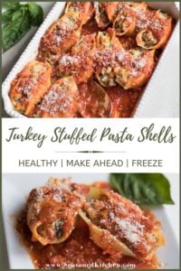These Turkey Stuffed Pasta Shells are impressive looking, scrumptious, and, an added bonus – they’re healthy too, using ground turkey, lots of veggies and small amounts of cheese.