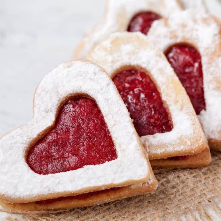 Almond Raspberry Cookies are scrumptious bites of love! Raspberry jam is sandwiched between two cinnamon and almond-flavored cookies, that are then dusted with powdered sugar.