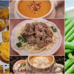 There is nothing better on a cold night to gather friends or family around the dining table to share a warm, comforting dinner. Mom’s Veal Stroganoff takes center stage in this menu, and it’s always a crowd pleaser! Serving it over a bed of fettuccini makes for a casual yet elegant presentation. I like to start the evening off with a bowl of warm soup, and end with an small, elegant and scrumptious sweet. Enjoy!